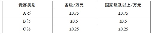 说明:学校标准(A类赛事1.5万元/项,B类赛事1万元/项,C类赛事0.5万元/项,从教务处学科竞赛专项经费支出。)