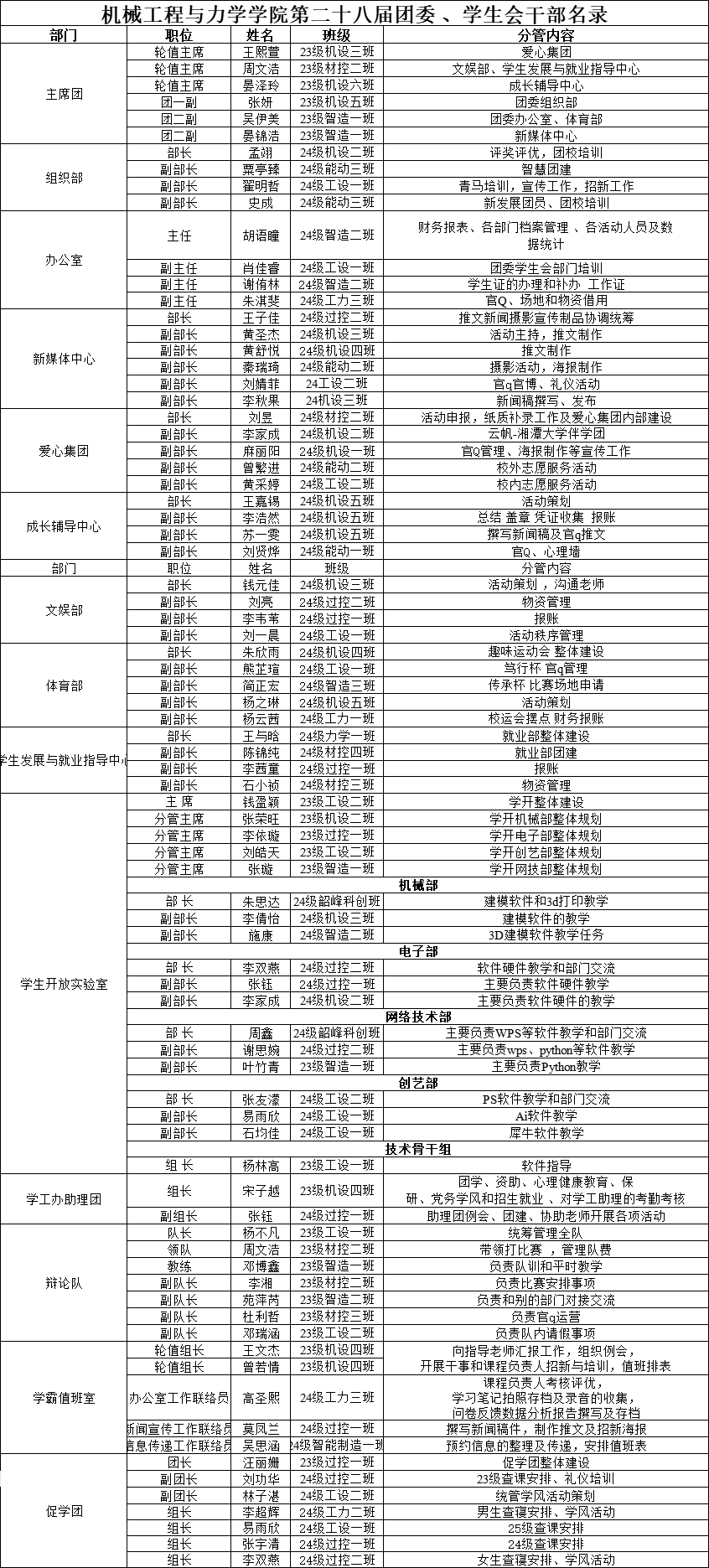 第二十八届团委、学生会干部名录