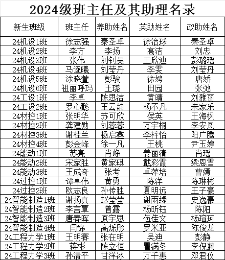 2024级班主任及其助理名录