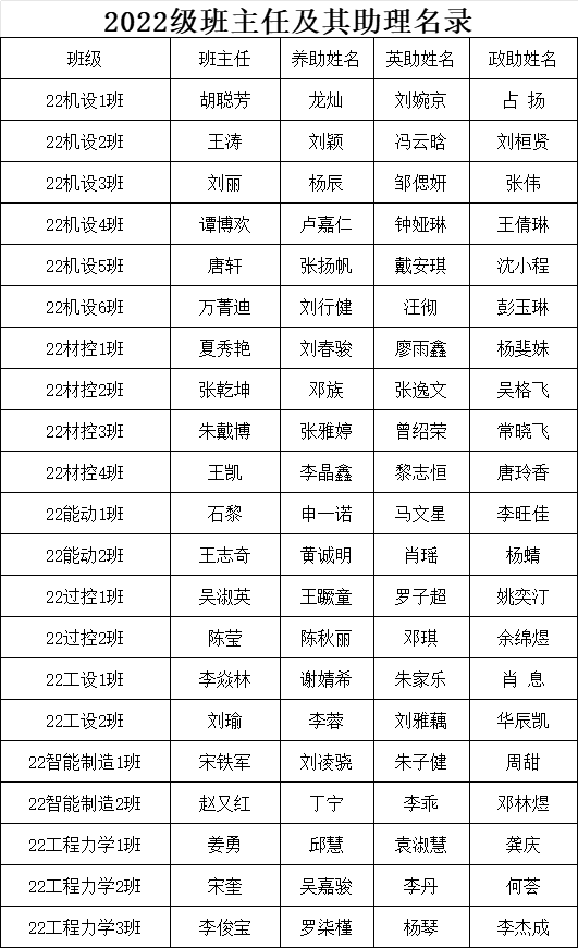 2022级班主任及其助理名录